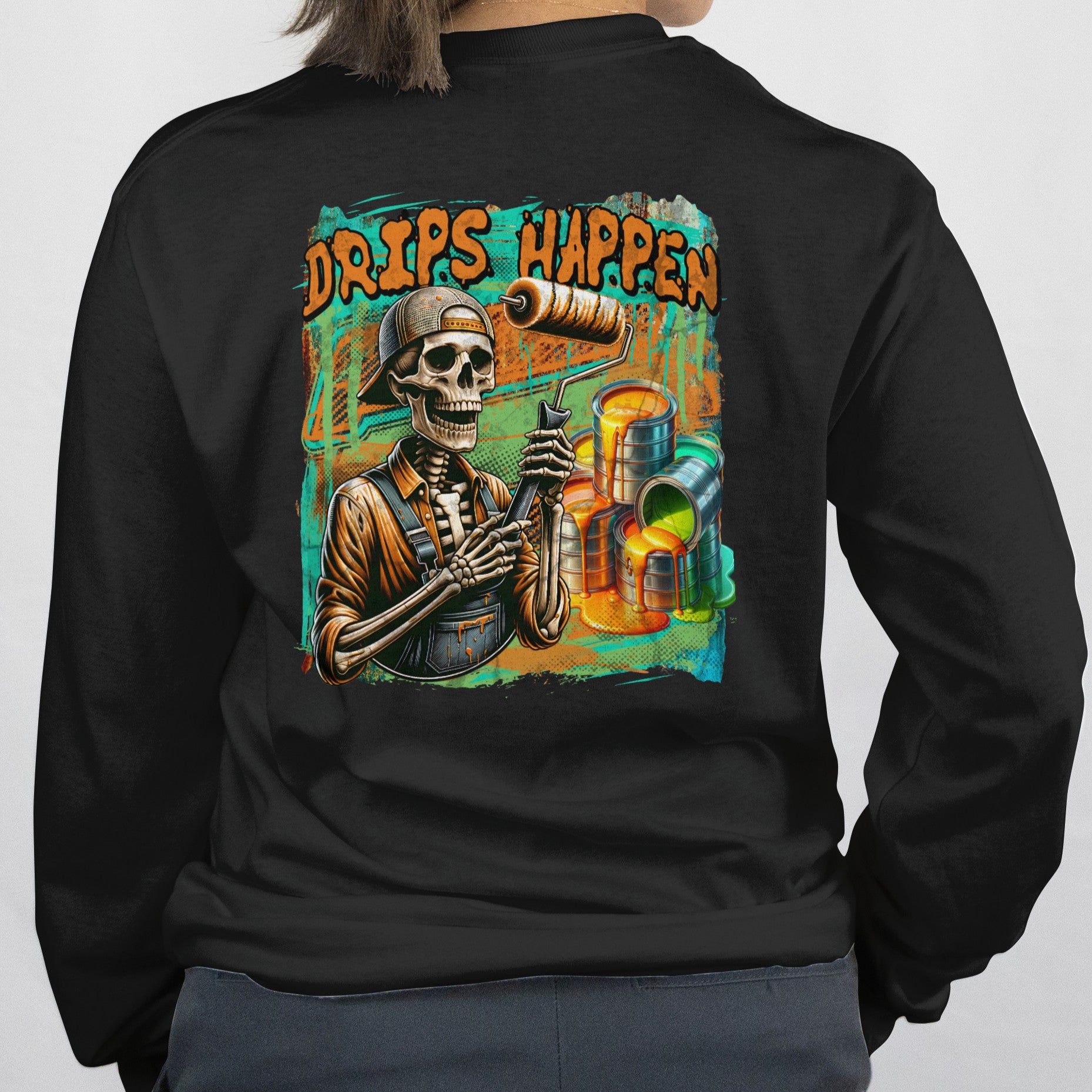 The Rusty Tradesman "Drips Happen" Long Sleeve Shirt features Rusty the skeleton geared up with a paint roller in hand, ready to lay down fresh coats. With splattered details across the design, this hoodie pays tribute to the messy, skilled art of the painting trade β because every great job comes with a little drip along the way. Built for comfort and durability, it's perfect for long days on the job or kicking back after clocking out.