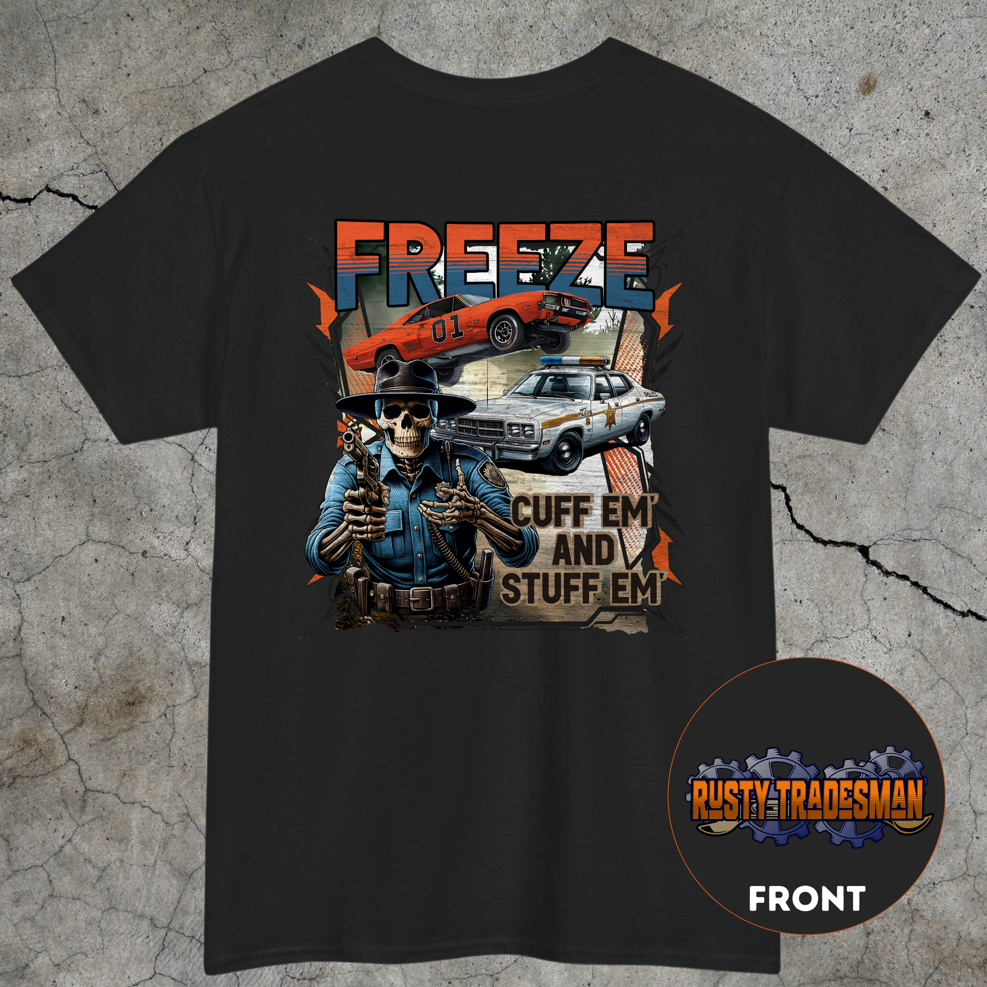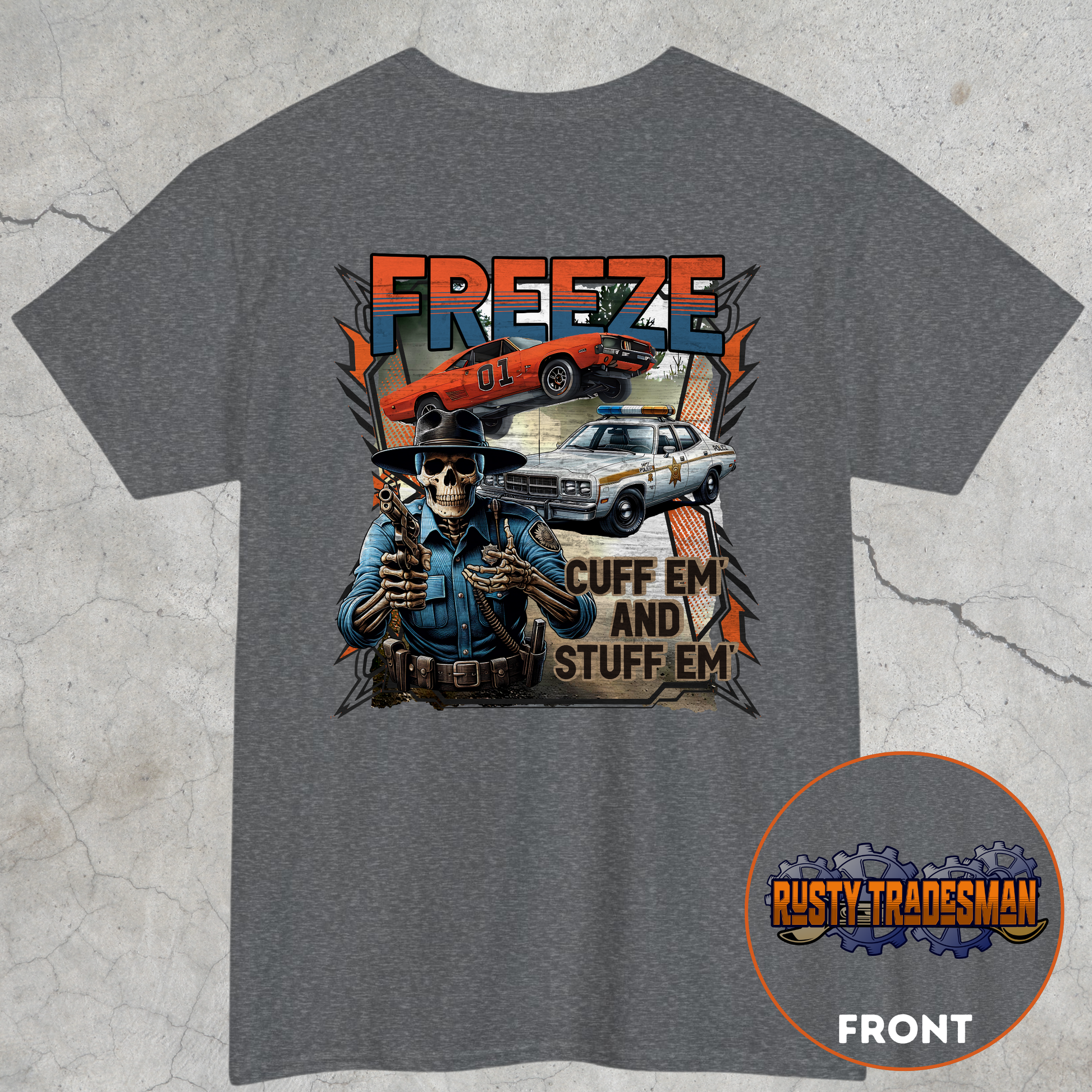 Freeze – Cuff ’Em and Stuff ’Em – Rusty Tradesman Sheriff Design 🚔T-shirt