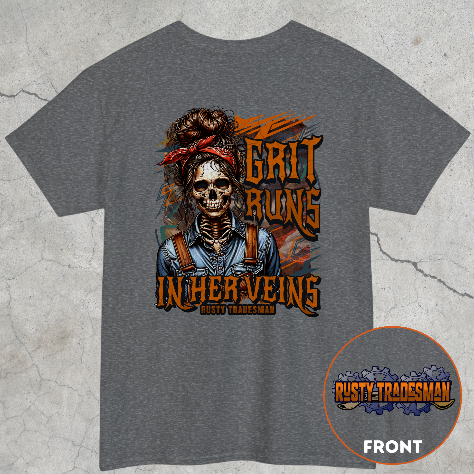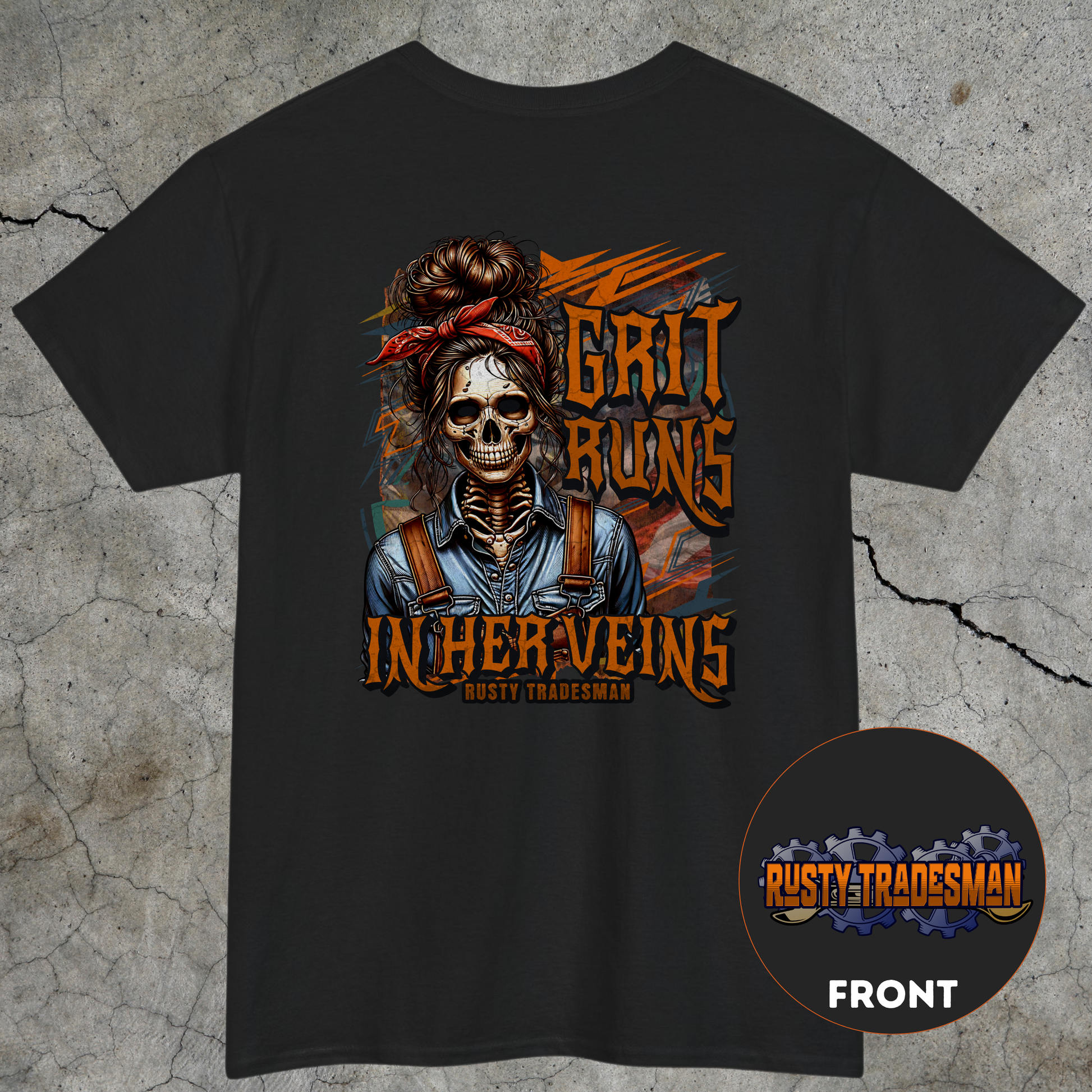 Grit Runs In Her Veins | Blue Collar Woman T-shirt
