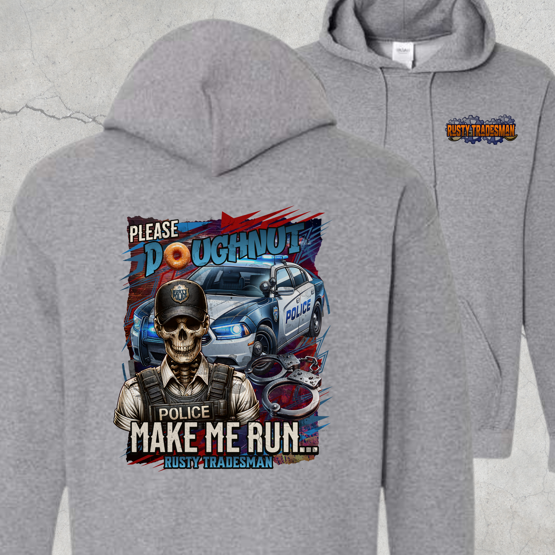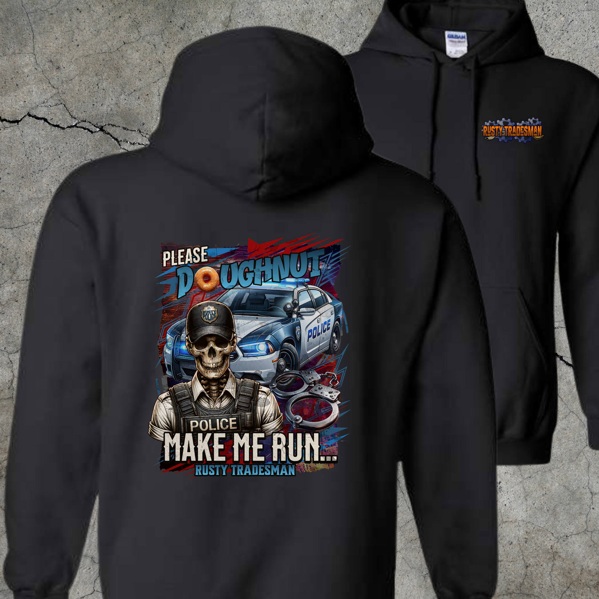 🚓 Please Doughnut Make Me Run – Rusty Tradesman Police Design 🍩Hoodie