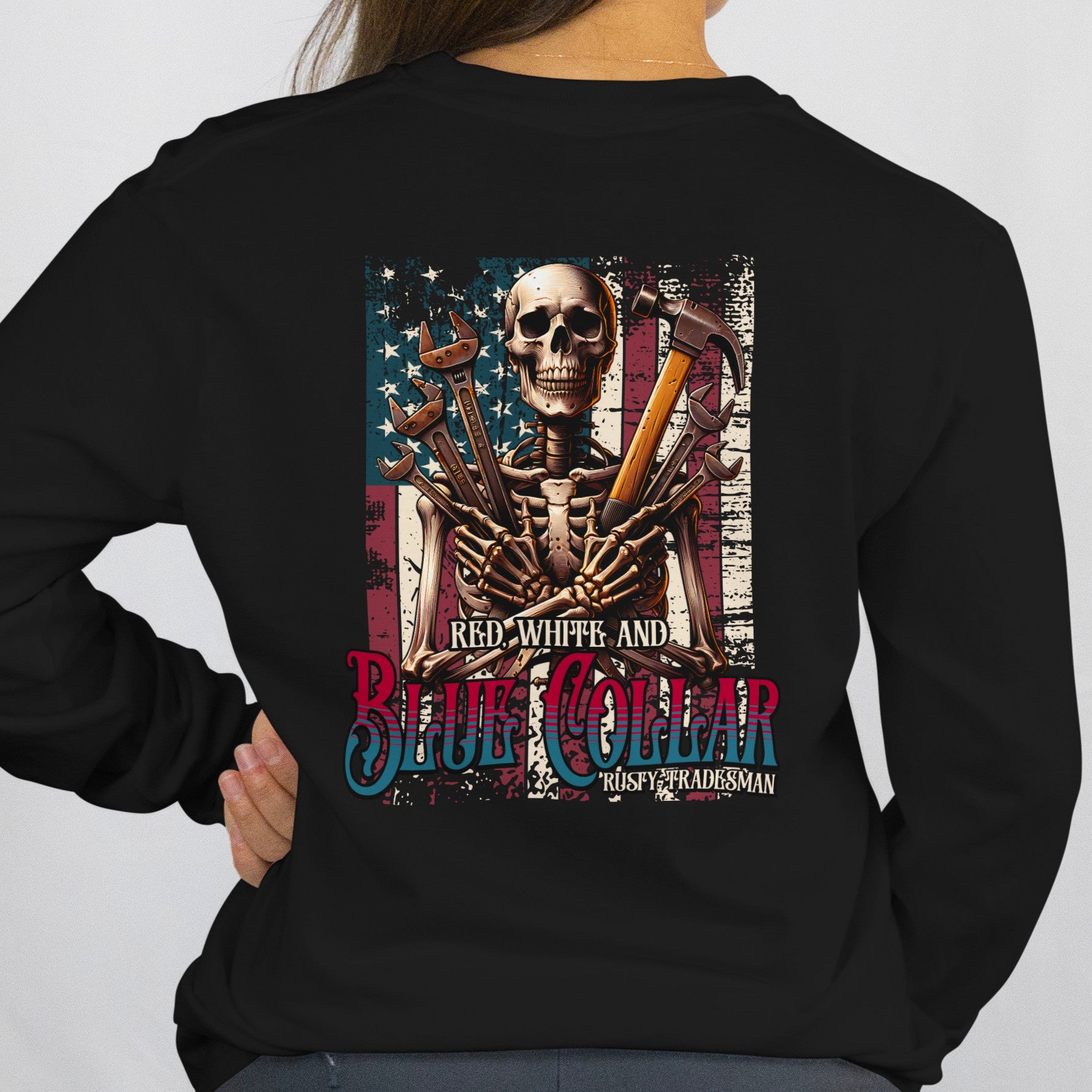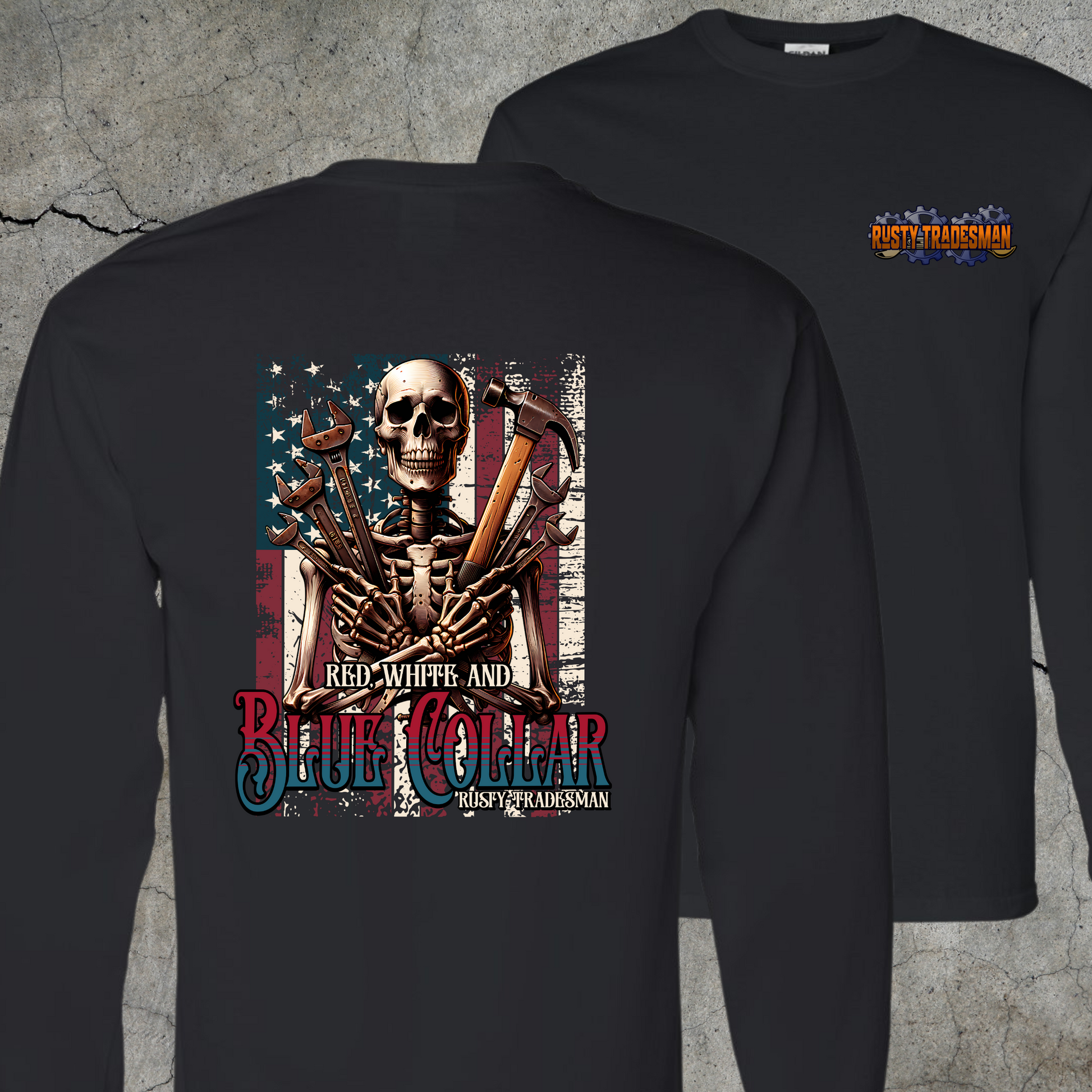 Printed on high-quality, rugged cotton for comfort that can take a hit and still show up the next day. Whether you're wrenching under the hood or kicking back on the 4th, this shirt says it all — Red, White and Blue Collar.